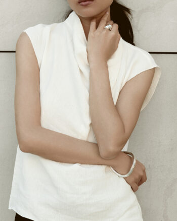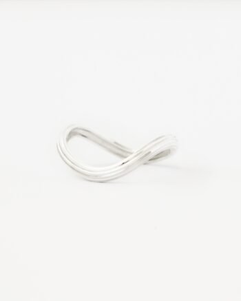 A striking, solid bracelet with a sinuous shape and subtle grooves on the surface. The quintessence of effortless elegance. The sculptural form is inspired by the coastline and the rhythm of ocean waves. Crafted from 925 sterling silver. Available in two sizes: S/M and M/L.