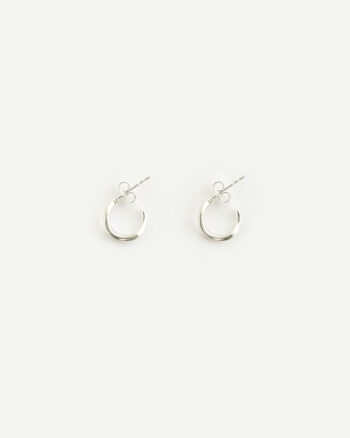 Kolczyki na sztyfice wykonane ze srebra próby 925 w kształcie nieregularnej fali, dostępne w 3 rozmiarach: petite 7mm, small 9 mm, medium 11mm.
