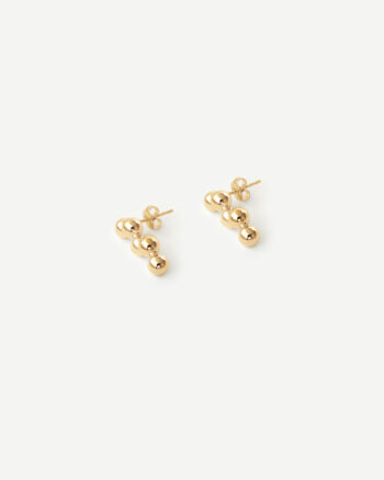 Kolczyki monolityczne na sztyfcie odlane ze srebra próby 925 pokrytego 18k złotem nawiązują do charakterystycznego dla serii Genes szyku kulek inspirowanego krzaczkiem porzeczki. Długość całkowita 20mm.