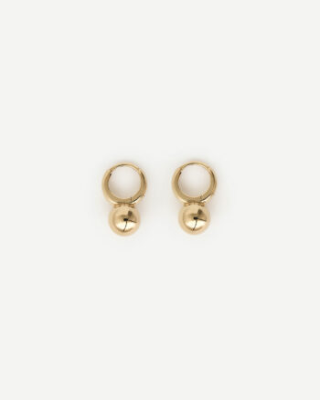 Wyraziste kolczyki na zapięciu typu bigiel wykonane z pozłacanego 18 karatowym złotem srebra próby 925, które uzupełnią każdą stylizację – zarówno dzienną jak i wieczorową. Długość całkowita kolczyków wynosi 2,3 cm, średnica kulki to 1 cm.